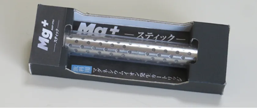 ピュアーマグネシウムイオンを長期間溶出させることができます。一般にマグネシウム金属を水やお湯に入れると、最初は多量のマグネシウムイオンが溶出しますが、すぐに被膜を形成するためイオン発生量は激減します。「Mg+スティック」に使用しています「Mg-TERRAST(発生剤)」は、WEF技術開発が開発した特許技術で、長期にわたって(今回は3か月間)、安定して、大量のマグネシウムイオンを金属から直接溶出させます。化合物を溶解させるのではありませんので、ピュアーなマグネシウムイオンを供給します。