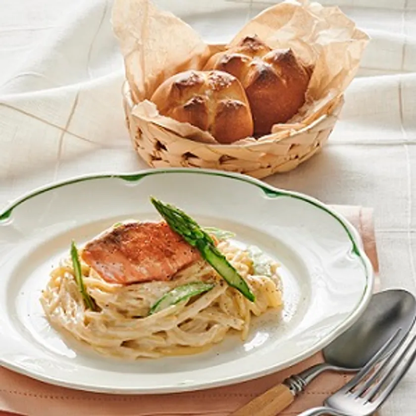 <初めての方限定>サーモンとアスパラガスのワンポットパスタ&オリーブソルト