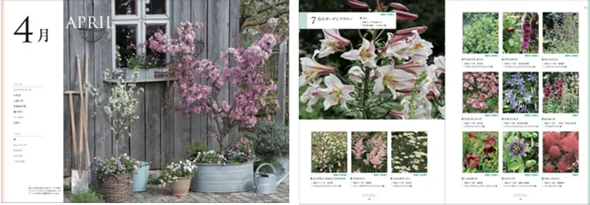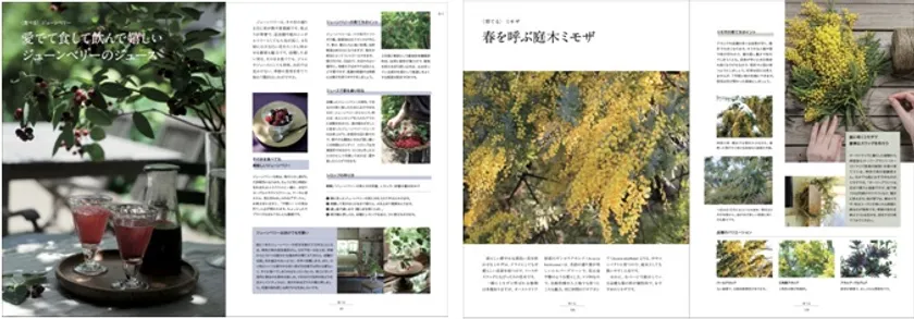 月ごとの旬の花や果実の美しい写真が満載の書籍内には、季節のイベントごとに合わせたフラワーアレンジや美味しいレシピなど、植物を暮らしのなかに取り入れる32のアイデアを収録。ページをめくるごとにワクワクする提案が目白押しです。さらに、栽培ハウツーや日々の管理など、毎月のガーデニング作業も合わせて解説しています。