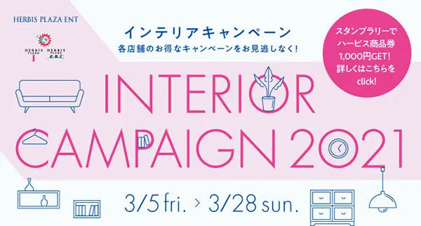 新生活シーズンにお得な「ハービスインテリアキャンペーン」や「Sポイント5倍ポイントアップキャンペーン」、1万円以上のご利用で素敵なプレゼントが貰える「マンスリープレゼントプレミアム」などお得なキャンペーンが盛りだくさん。