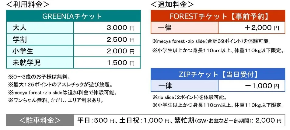 ※六甲山アスレチックパーク GREENIAの休園日は木曜日