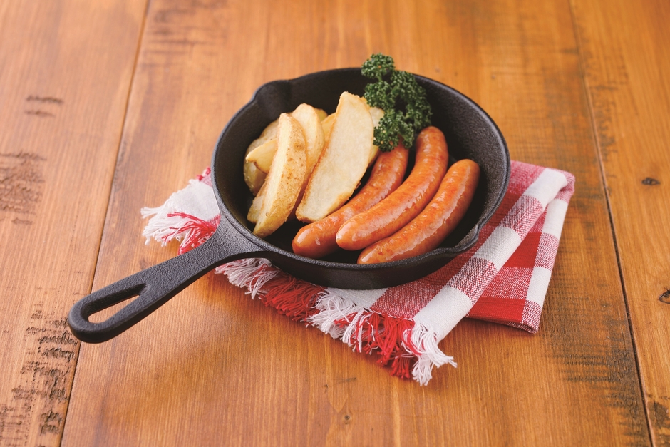 「さつまハーブもち豚」のカタ肉・頭肉のみを10mmに粗挽きし、豚肉の旨み・肉感・食べ応えがあるウインナーに仕上げました。