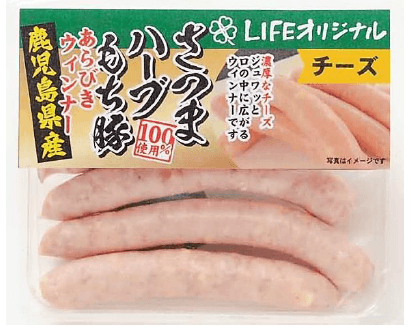 ライフオリジナルの国産原料を使用したウインナーをお届けしたいと思い開発しました。味わい・食感などを試行錯誤し、独自の製法で、ライフが自信を持ってお届けする「鹿児島県産さつまハーブもち豚」を100%使用したウインナーが完成しました。国産産地指定の銘柄原料を使用しながらお手頃な価格を実現しましたので、スモークとチーズの2つのフレーバーをぜひ食べ比べてみてください!