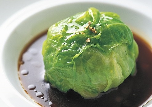 「フォアグラのキャベツ包み」。シンプルな食材を使うからこその細部への
