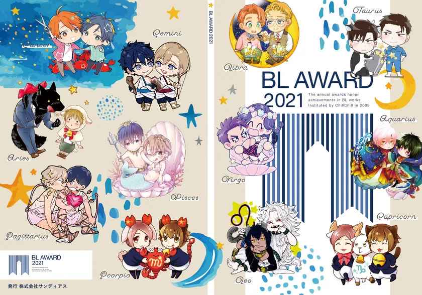 また、本年の特典小冊子は表紙も豪華! 12星座をモチーフとした人気BL漫画の恋人同士などが、ミニキャラとして描かれ、小冊子内では2021年のオススメBLの傾向などが分かる「ちるちる腐女子12星座占い」も楽しめます。