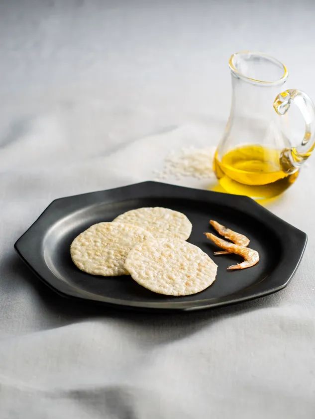 富山湾の宝石しろえびを、富山県産米100パーセントの生地にたっぷりと練りこみました。パリッとした食感に塩味ベースのしろえびせんべいにオリーブオイルとほのかな酸味で上品な味に調えました。