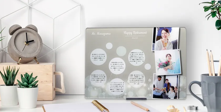ステイホームが主流になり、お世話になった先生、先輩、同僚、上司の送別会ができないことが多くなってきました。今までは、送別会の準備の一つとして、みんなで感謝の言葉を色紙に書く寄せ書きが主流でしたが、紙に書くのではなく、色紙をオンライン上でシェア、きれいな写真も掲載してアクリル板にUV特殊印刷を利用した印刷をする新しい寄せ書きのプレゼントをご提案いたします。