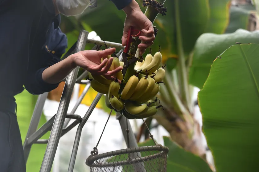完熟したバナナを1本1本手で収穫