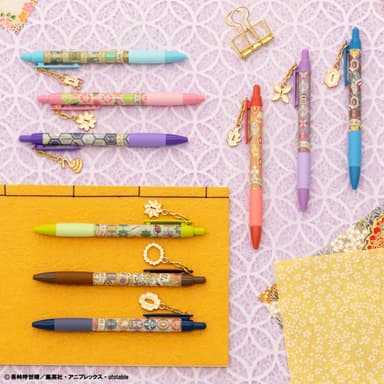 A賞の炭治郎と禰豆子のイメージを散りばめたデザインのマルチペンポーチは、たっぷり収納できるA5サイズで、180度両面開きのため、何が入っているか一目でわかる便利仕様です。B賞の柱をイメージした3本セットのボールペンは、日輪刀の鍔デザインのメタルチャーム付き。このほか、累計出荷本数960万本突破のサンスター文具オリジナルブランドのコンパクトハサミ「スティッキール」や、A5サイズ方眼ノート、和紙風手触りのクリアファイルなど、いずれもキャラクターのイメージを細部にまでデザインに盛り込んだ、可愛らしい仕上がりです。