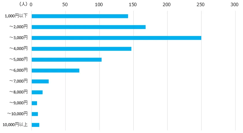 Q. オンライン(ライブ)配信を視聴する場合いくらまでなら払いますか。(日本のオーケストラ演奏約90分間の場合)