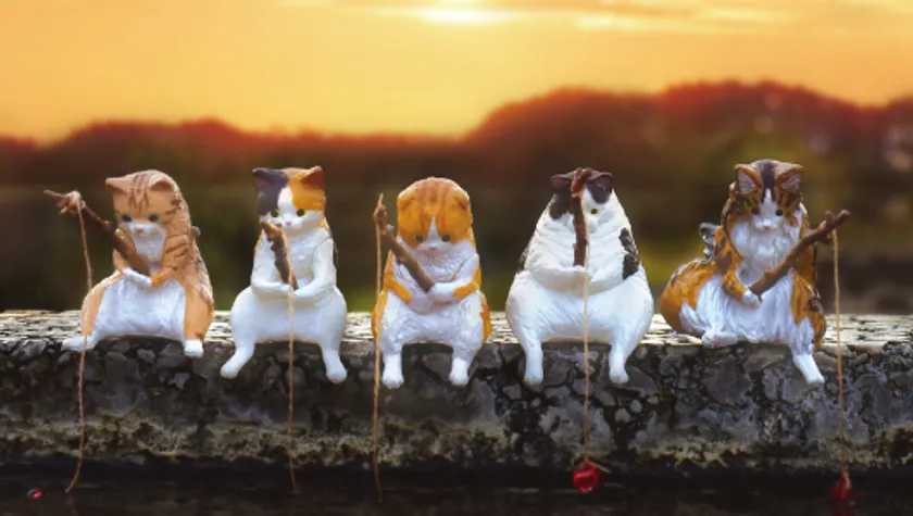 釣り糸を垂れる姿に癒される猫たちのカプセルフィギュアが誕生 「釣り日和~猫たちのひまつぶし~」全5種を発売 ~ふちに座ってのんびり、まったり~