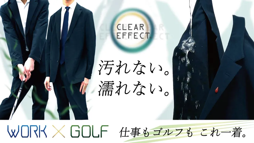 「衝撃の防汚・イージーケアスーツ CLEAR EFFECT 第二弾」を Makuakeにてテスト販売開始 職場・テレワーク・ゴルフに!
