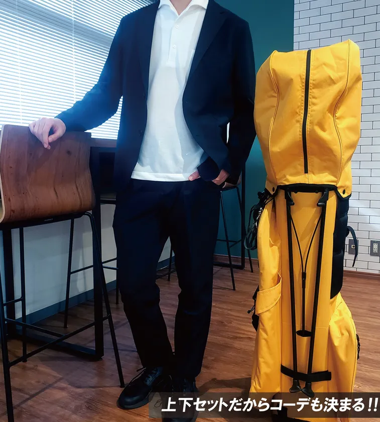 高い撥油性・撥水性能を有した生地(表地)を使用しており、汚れや濡れが気になる天候・会食等のビジネスシーンに適しているだけでなく、ゴルフシーンにおいても利用できる仕様となっており、非常に万能性の高いセットアップスーツとなっております。(注1)