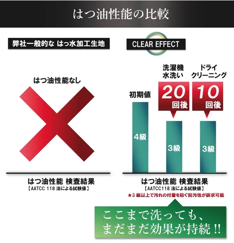 (1) 「汚れない」「濡れない」の標榜に相応しい防汚性能と撥水性能