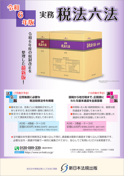 新日本法規出版株式会社(所在地:愛知県名古屋市中区栄1丁目23番20号、代表取締役社長:河合誠一郎(https://www.sn-hoki.co.jp/))は、「実務 税法六法-法令 令和6年版」を2024年7月5日に発売いたしました!