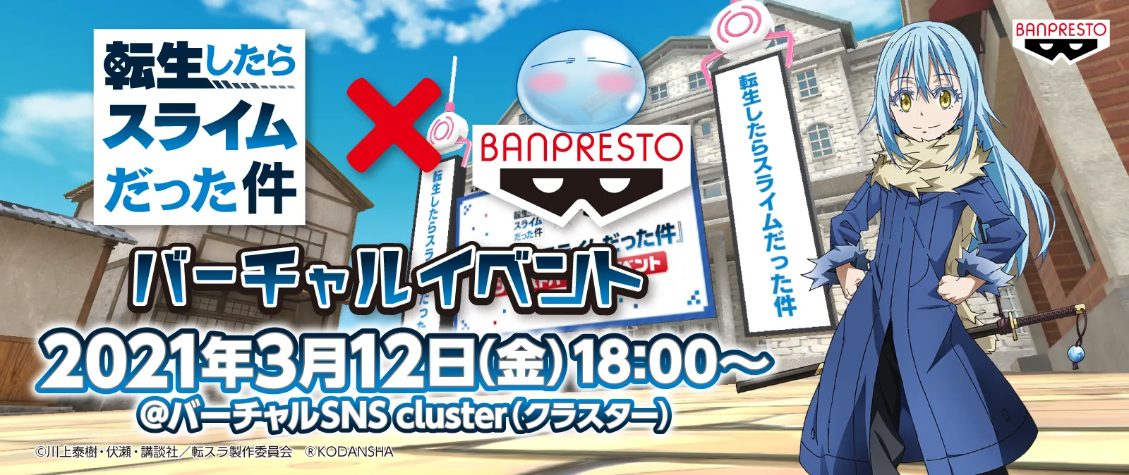 株式会社BANDAI SPIRITS(代表取締役社長:福田祐介、本社:東京都港区)は、クレーンゲーム機などのアミューズメント専用景品を展開するバンプレストブランド初のバーチャルイベントとして、テレビアニメ「転生したらスライムだった件」のバーチャルイベントを2021年3月12日(金)18:00から3月31日(水)23:59まで開催します。