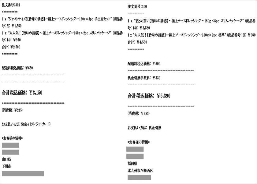 通販での実際のご注文例2