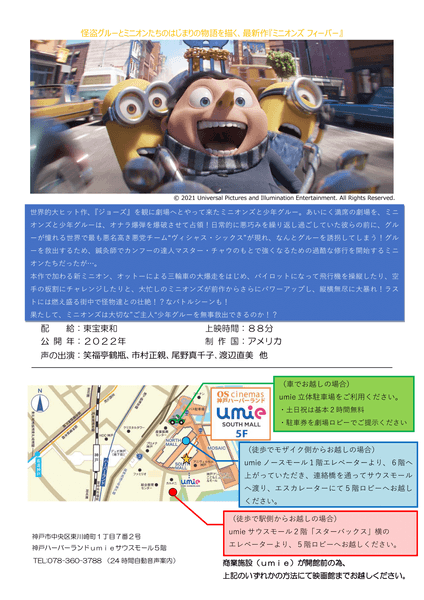 今回は「ミニオンズ フィーバー」を上映いたします。ご家族やご友人も一緒にご鑑賞いただけますので、以下の要項をご参照のうえ、是非ご応募ください。