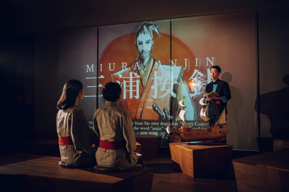 「青い目のサムライ」と呼ばれ、日本初の西洋式帆船を伊東の地で造船した英国人航海士・三浦按針(ウィリアム・アダムス)。界 アンジンでは、按針の生きた時代や当時の航海の知恵を伝えるショートムービー「青い目のサムライ紀行」を毎日上演しています。按針が日本に来た経緯や、「サン・ブエナ・ベントゥーラ号」の造船などロマンあふれる物語に耳を傾け、遠い国や昔に心を馳せることができます。