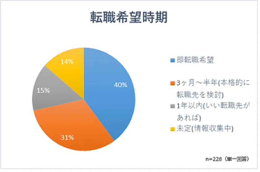 3. 約4割が即転職希望であり、本格的に転職先を検討している方を含めると、