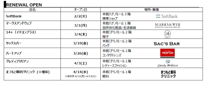 株式会社京阪流通システムズ(本社:大阪市中央区、代表取締役社長:松下靖)が運営する京阪沿線のショッピングモールKUZUHA MALL(枚方市楠葉花園町15-1)は、2月から4月にかけて新規&リニューアルオープンする26店舗の出店詳細と、オープン記念イベントの詳細が決定しましたので、お知らせいたします。