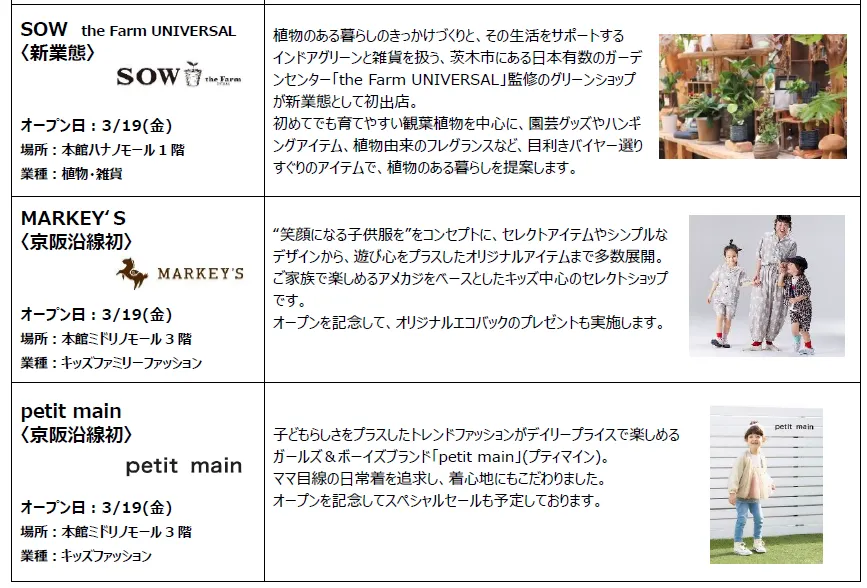 (新規17店舗&リニューアル7店舗&京阪百貨店くずはモール店新規2店舗)