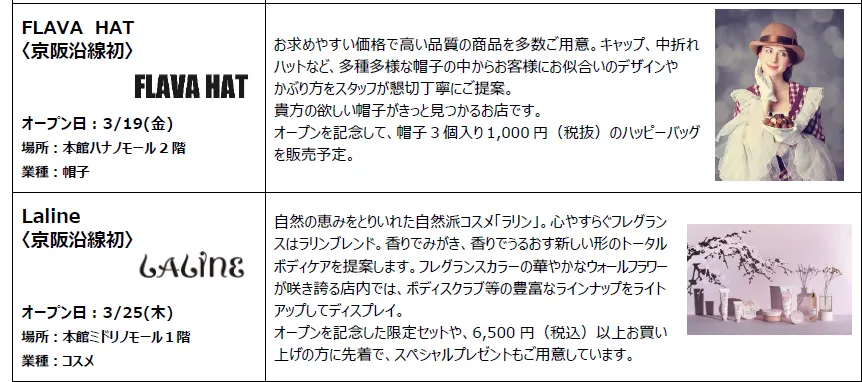 京阪百貨店くずはモール店 NEW OPEN
