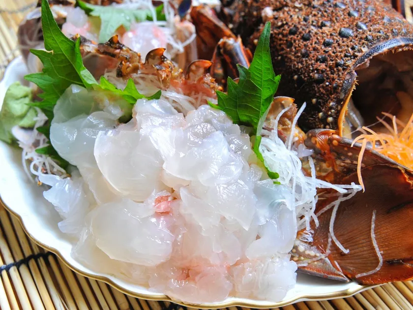 肉厚でプリっとした食感と強い甘味を楽しめるお刺身、火を入れて奥深い旨味と甘みを引き出した具足煮、2通りの食べ方でお楽しみ下さい。