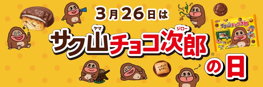 サク山チョコ次郎の美味しさやコミュニケーションの楽しさをより多くの方に知っていただくことを目的に、3月26日を「サ(3)ク山チョコ次郎(26)の日」として定めています(一般社団法人日本記念日協会認定)。