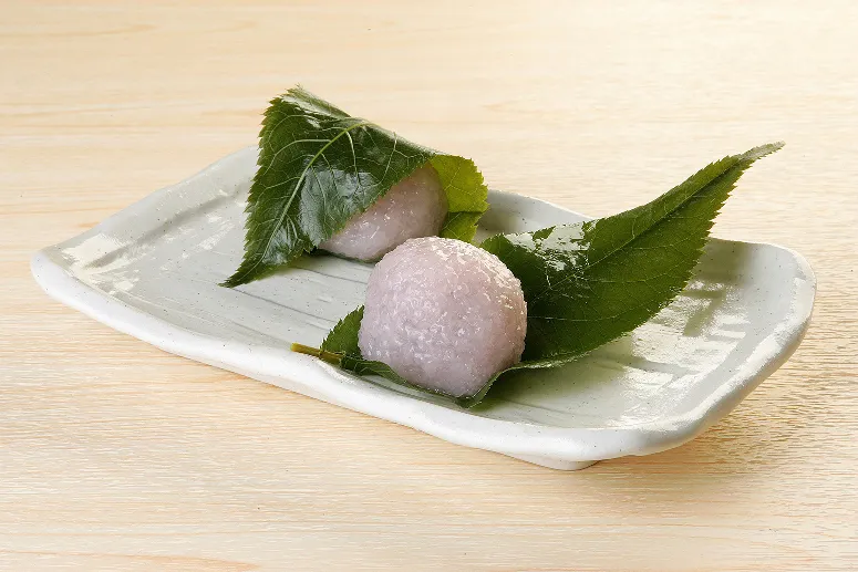 道明寺粉の生地で自家製こしあんを包んだ桜の季節定番の桜餅。