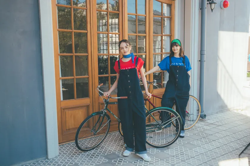 トレンドのスモーキーなアースカラーで、サロペットパンツやエプロンスカートを展開します。