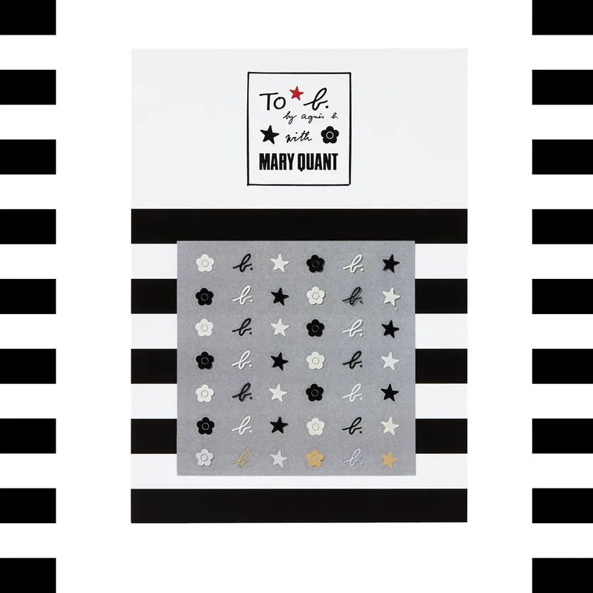 今年秋に発売予定のTo b. by agnes b. x MARY QUANTコラボレーション商品に先駆け、全国のショップおよび公式通販サイトにて期間中に税込16,500円以上お買い上げのお客様には、To b. by agnes b. x MARY QUANTコラボレーションネイルステッカーをプレゼントいたします。