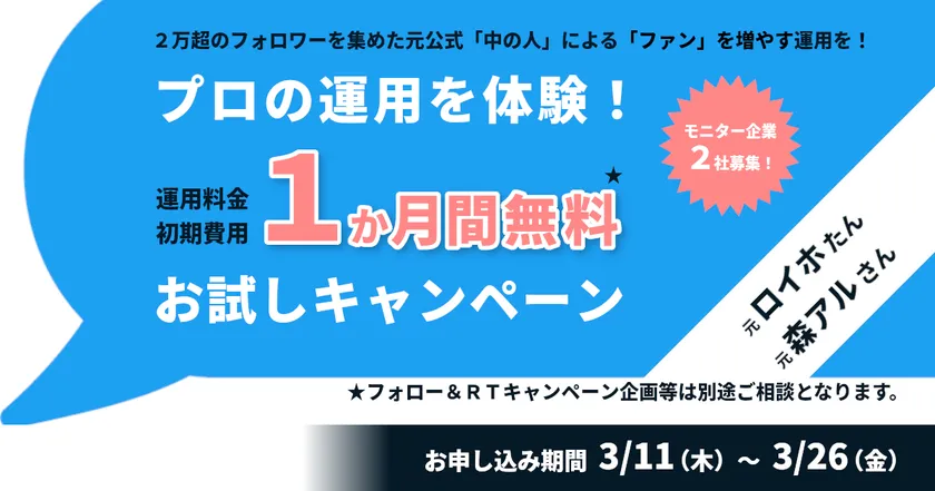 実績のある元公式「中の人」によるツイッター運用を体験! 「1か月間無料お試しキャンペーン」モニター企業募集!