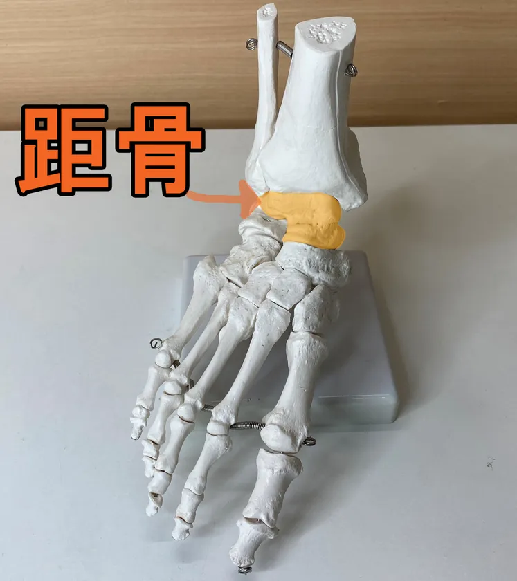 足は約26個の骨で構成され、それらが身体の重さを支えるために立体的に組み合わさっています。一例として、これらの骨の中心の【距骨(きょこつ)】という骨に捻じりが生じることがあります。