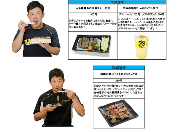 ■監督・選手コラボグルメラインナップ(「☆」は後述の景品プレゼント対象のお弁当です。)