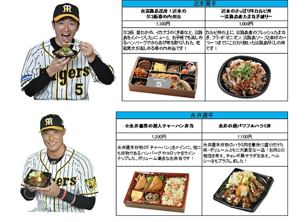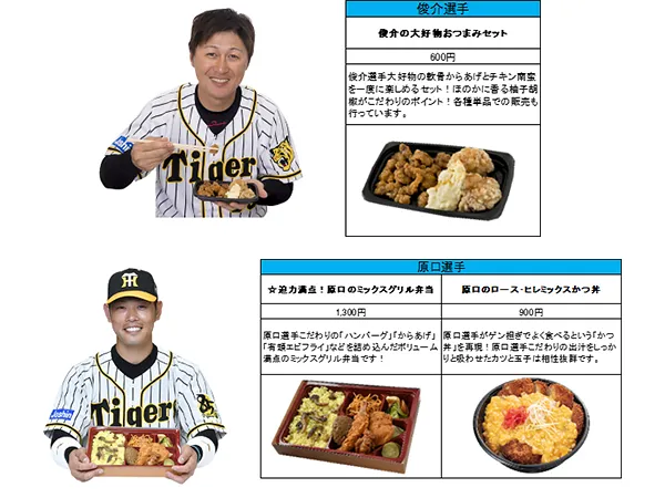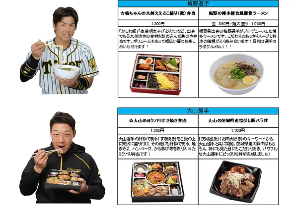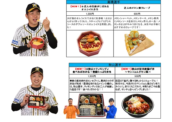 今シーズンは、今年も活躍が期待される木浪選手や青柳選手等の新メニューに加え、秋山選手とお笑い芸人のティモンディが開発した異色のコラボ弁当など、これまでにないメニューが目白押しです!計23名、35種類以上の充実のラインナップを取り揃えています。