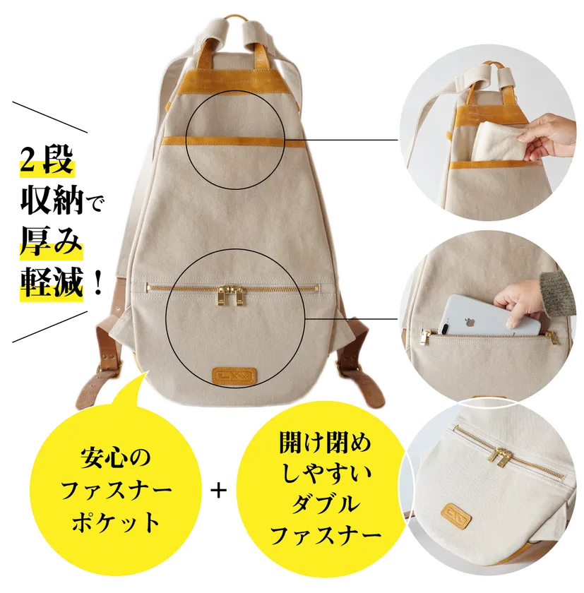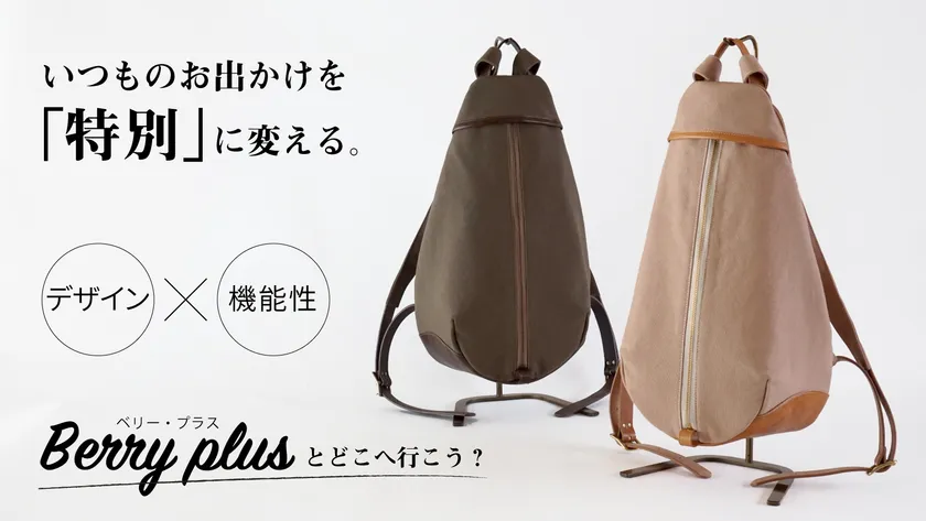 革工房「革のある暮らし」(所在地:千葉県千葉市、代表:澤田 治美)は、帆布作家「Hanp Bag Trocco」(所在地:茨城県つくばみらい市、代表:宮野 陽介)とコラボレーションし、「Hanp Bag Trocco」の個性的な“しずく型”が人気のリュック【ベリー】に革アレンジを加えて機能性もアップした、大人向けのスマートリュック【ベリーplus】を共同開発しました。