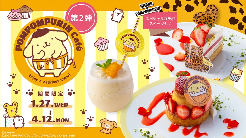 さらに、大阪を拠点として活動するアイドルグループNMB48とポムポムプリンのコラボカフェメニューも第2弾が登場します。