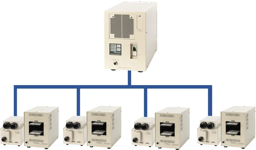 1台の電源に最大4台までのトランスを接続できるマルチトランスにも対応しているため、複数溶接工程を1台の溶接電源と複数トランスの構成で実現でき、生産能力を維持しつつ、設備導入費低減と工場側電力設備の容量低減(負荷平準化)を実現します。同時加圧、順次通電や異なる2工程の設備搭載も可能です。