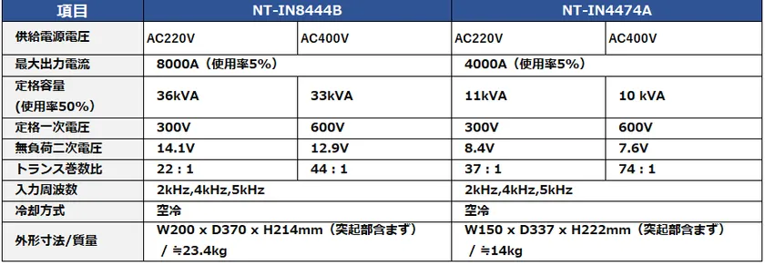 今回の「高信頼性インバータ式溶接電源」(以下 NRW-IN400PA)は、「モータ」及び「電池」市場における新たな接合機器のニーズに対応するため、機能を強化し「モータ」や「電池」の高品質化や高精細化の実現に貢献します。またトランスのラインアップを増やし、幅広い分野のアプリケーションでご使用いただけるようになりました。