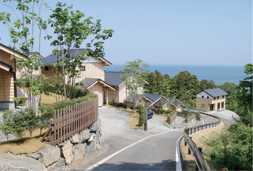 2011年に、寄付による民営復興住宅(全11棟)として工学院大学が手掛けたプロジェクトで、被災した漁師世帯などが自主再建を果たすまでの一時的な住まいとして提供されてきました。土地を地元企業の熊谷産業が提供し、建物を工学院大学が建設、運営管理および住民ケアを特定非営利活動法人 りあすの森が担い、三位一体で地域復興のために運営してきた住宅群です。