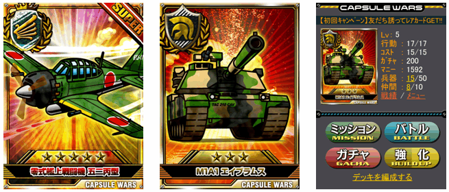 「最新・伝説の兵器」を使ったカードバトル! GREEでソーシャルゲーム「大乱闘!カプセルウォーズ」提供開始! ~兵器の系譜が進化合成で楽しめる~