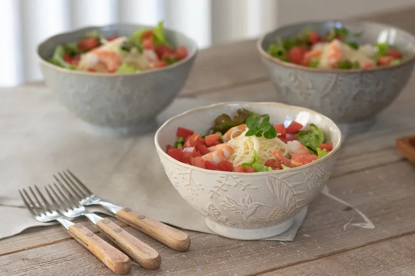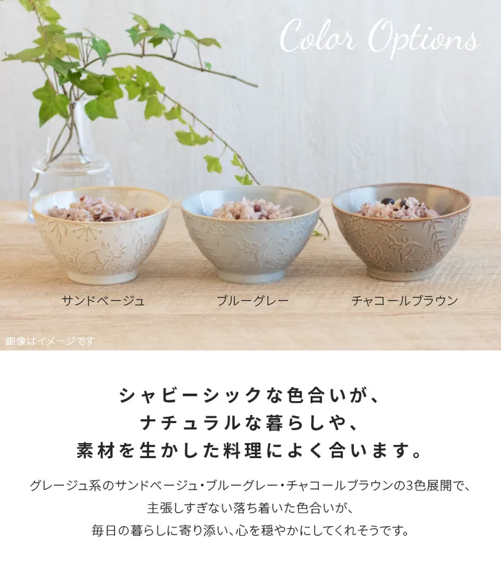 茶碗として、麺料理のどんぶりとしての使用はもちろん、和洋問わずボウルSはスープやカフェオレボウルにしたり、ボウルLはテーブルの中心に置くサラダボウルにするなど、盛鉢としての使い方もオススメです。主張しすぎず、落ち着いたハミングバードの器が、穏やかな食事のひとときにしてくれます。