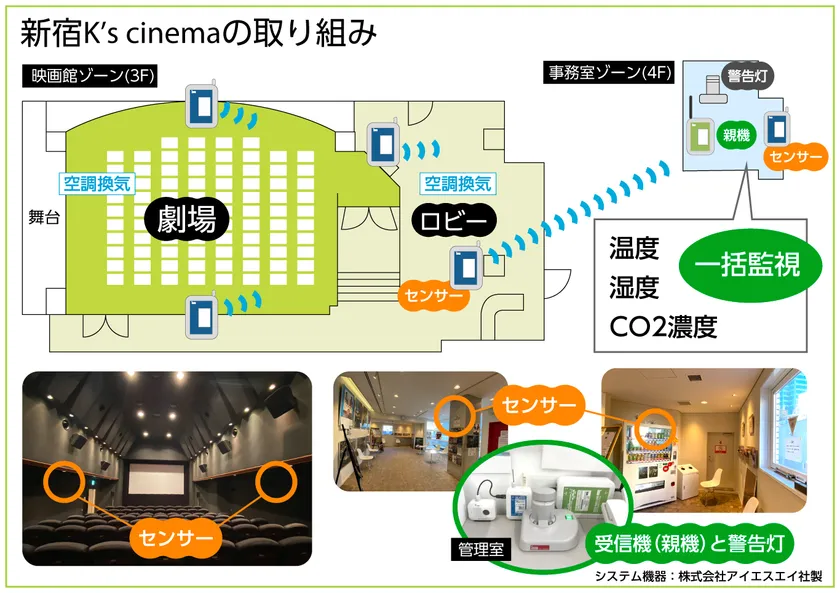 新宿K’s cinemaでは、業界に先駆け、IoT技術による 「映画館施設内の環境モニタリング+警告灯システム」を導入 お客様の安心・安全に向けた新たな取り組みを開始!
