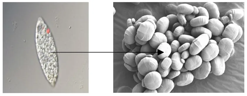 パラミロン高含有ユーグレナ(EOD-1株)とパラミロン顕微鏡写真