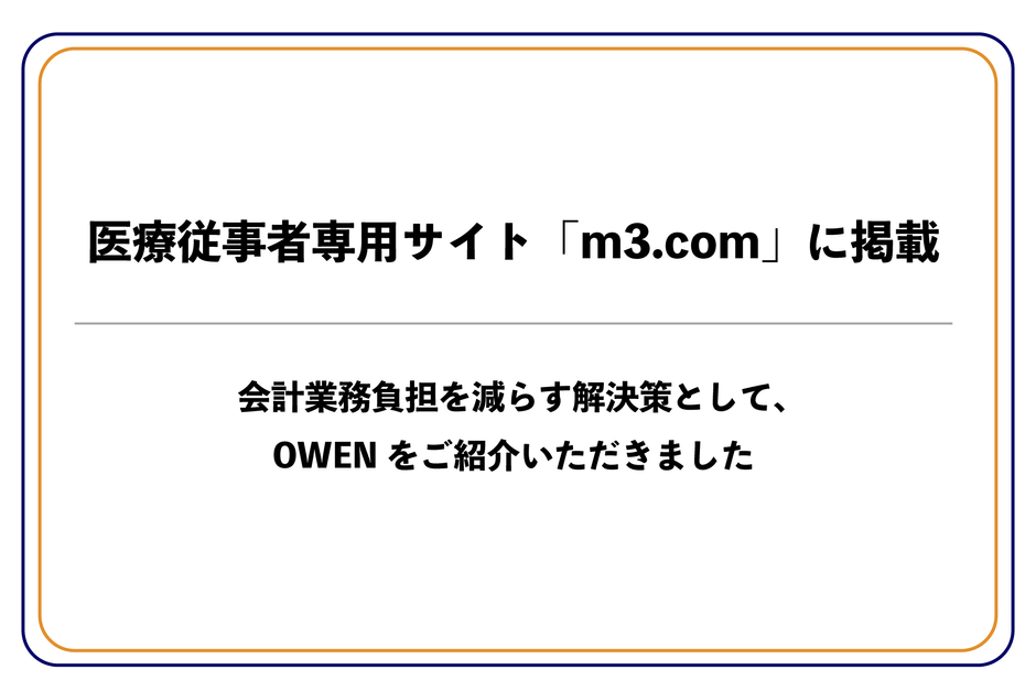 そのなかで今回、「m3.com」において、診察後の会計業務負担を減らす解決策としてOWENをご紹介いただいたことは大変光栄です。