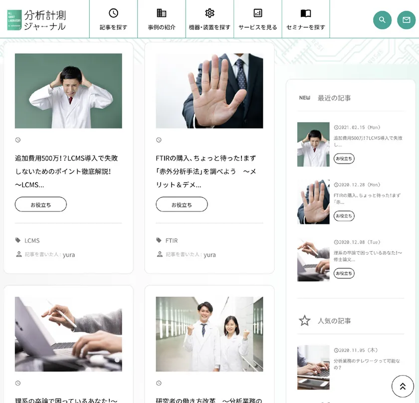 つまり『分析計測ジャーナル』は研究者の成果の最大化から、市場での優位性確立を支援するためのWEBメディアです。