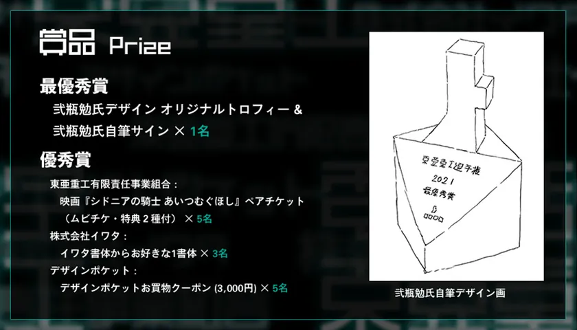 優秀作品には「弐瓶勉氏デザイン・オリジナルトロフィー」などプレゼント