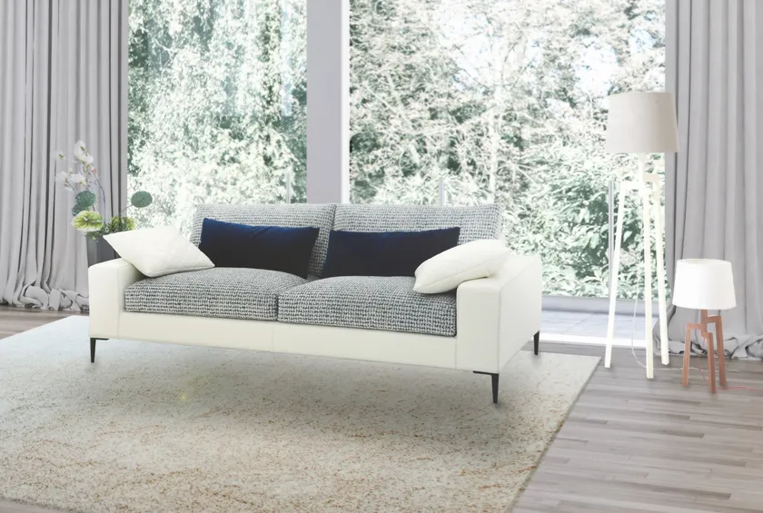 上質な本革とファブリックの異なる素材を組み合わせることで、シックな印象に。