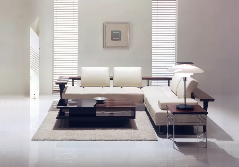 美しいウォールナットを使ったバックデザインが印象的な本革ソファ。